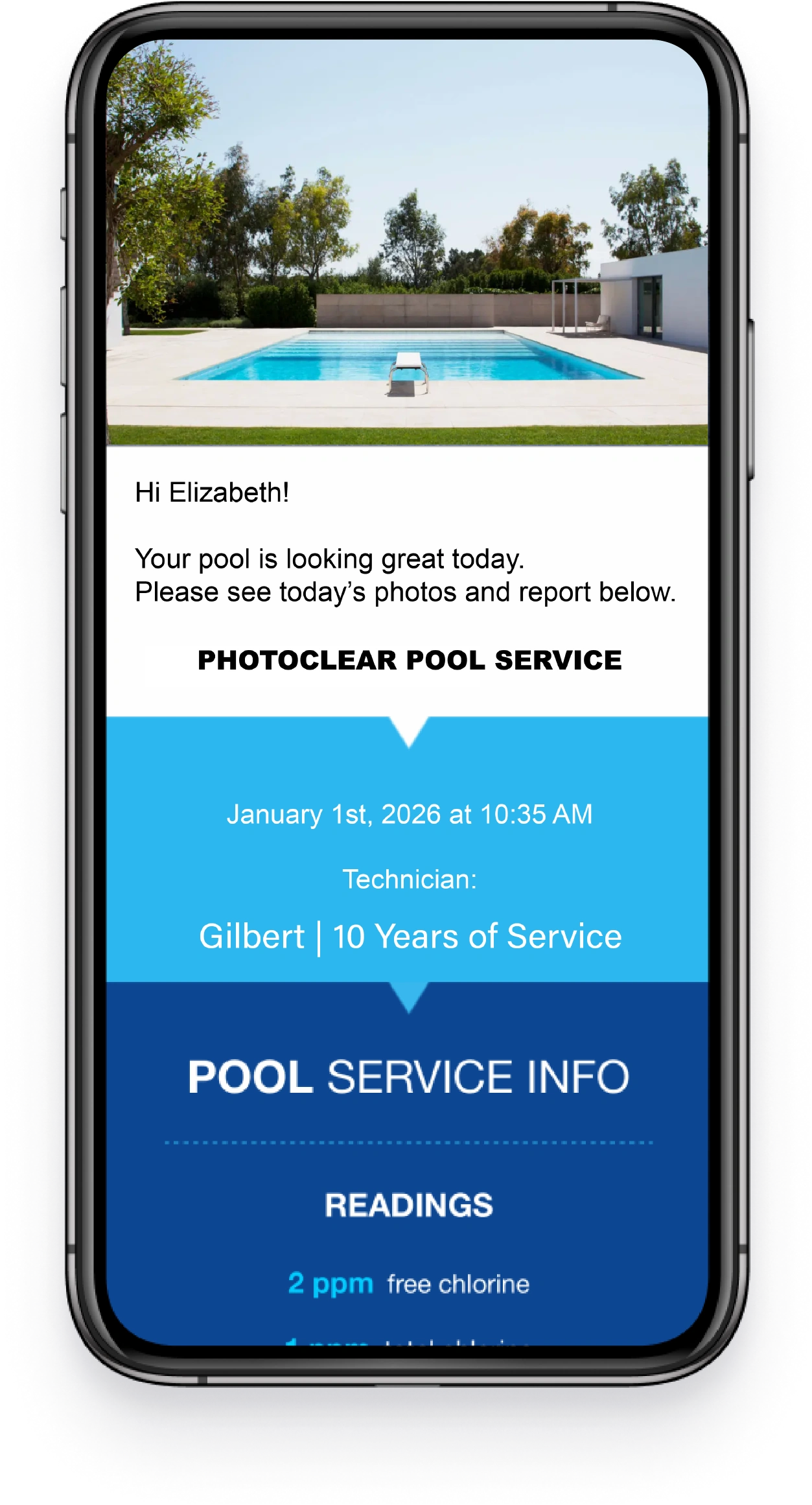 PhotoClear Pool Service is the Valley’s most transparent and reliable weekly pool care company. We combine professional cleaning with technology-driven reporting, providing before-and-after photos and full chemistry logs after every service.